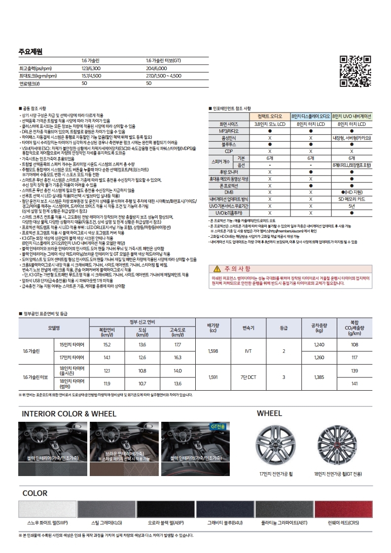K3 2세대의 가솔린 엔진 복합연비는 무려 15.2km/l(15인치 휠 기준)이다.