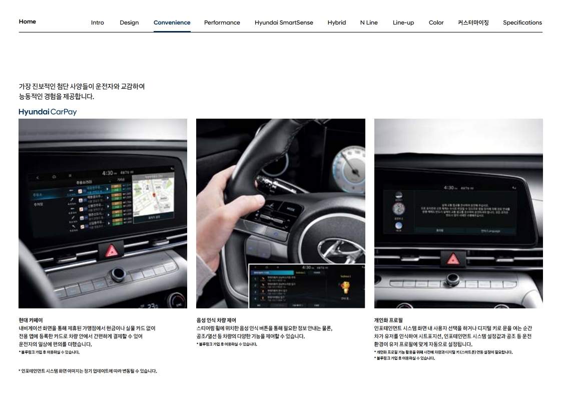 파워트레인은 가솔린과 LPi 두 가지가 마련되어 있습니다. 향후 터보와 하이브리드도 대기 중입니다. 판매의 대부분은 ‘스마트스트림’으로 일컬어지는 가솔린 모델입니다. L당 15.4km 가는 좋은 효율을 자랑하죠. 대신 제원 상 출력은 오히려 퇴보했습니다. 최고출력은 123마력, 최대토크는 15.7kgf·m에 불과합니다. 숫자만 놓고 보면 아반떼 HD와 비슷한 수준. 여기에 IVT로 불리는 무단변속기를 달아 달리기에 대한 기대감을 꺾었습니다. ‘달릴 거면 앞으로 나올 N 라인 사라’는 걸 수치로서 암시하는 듯합니다.