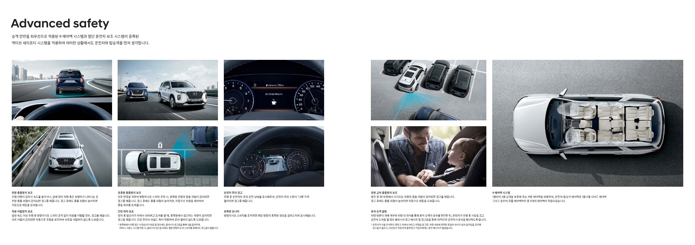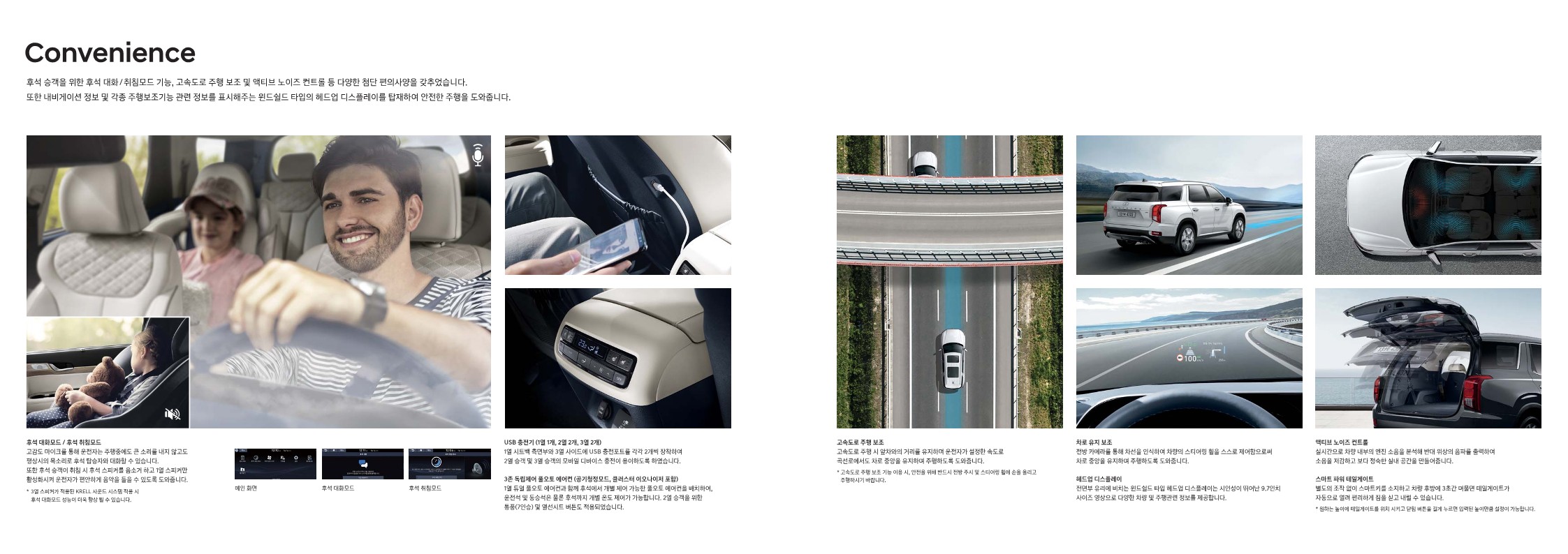 출시 당시 현대차는 팰리세이드를 두고 직관적인 사용자 경험을 기반으로 개발된 대형 SUV라고 표현했습니다. 그리고 나만의 공간과 휴식처를 뜻하는 케렌시아를 함께 강조했었는데요, 그에 걸맞은 실내에서의 사용자 경험은 매우 명확하게 다가옵니다. 2.9m에 이르는 휠 베이스의 실내 거주성과 활용성은 우수할 뿐만 아니라 현대차의 장기라고 할 수 있는 여러 편의사양들과 합쳐지면서 더욱 긍정적인 경험을 선사해줍니다.