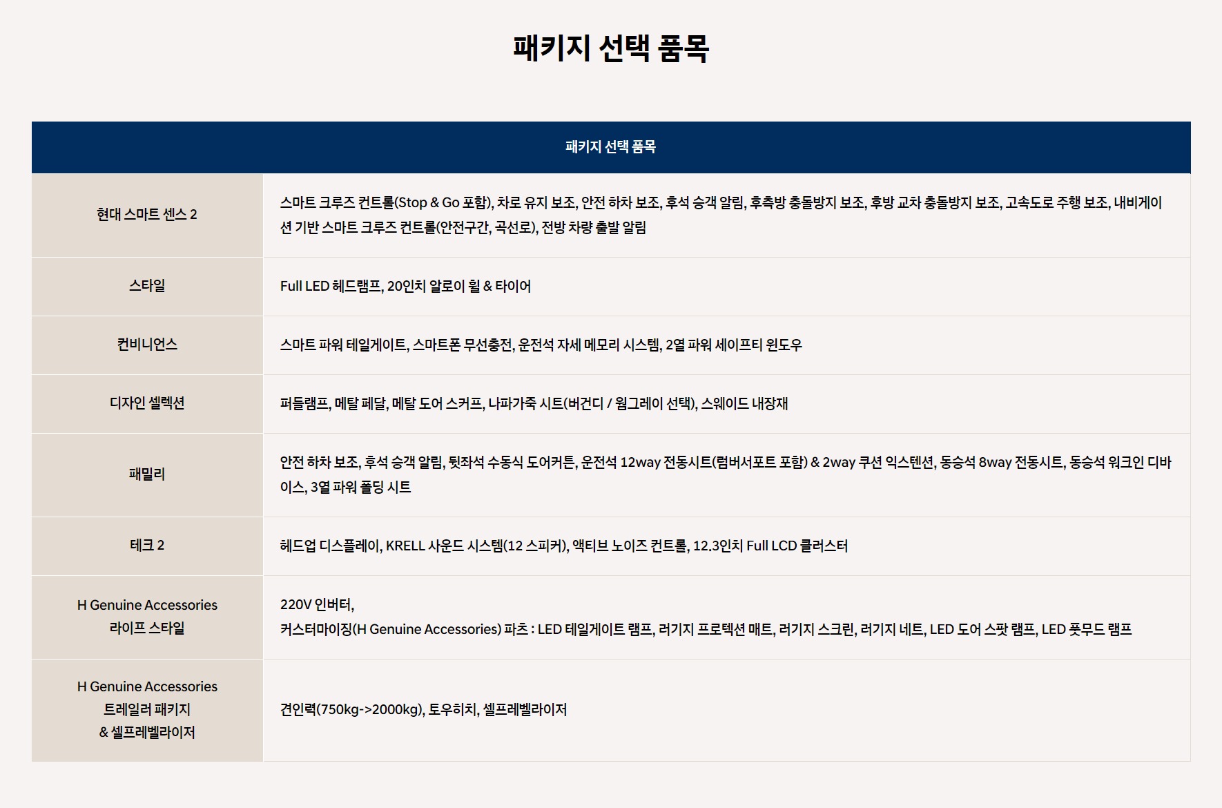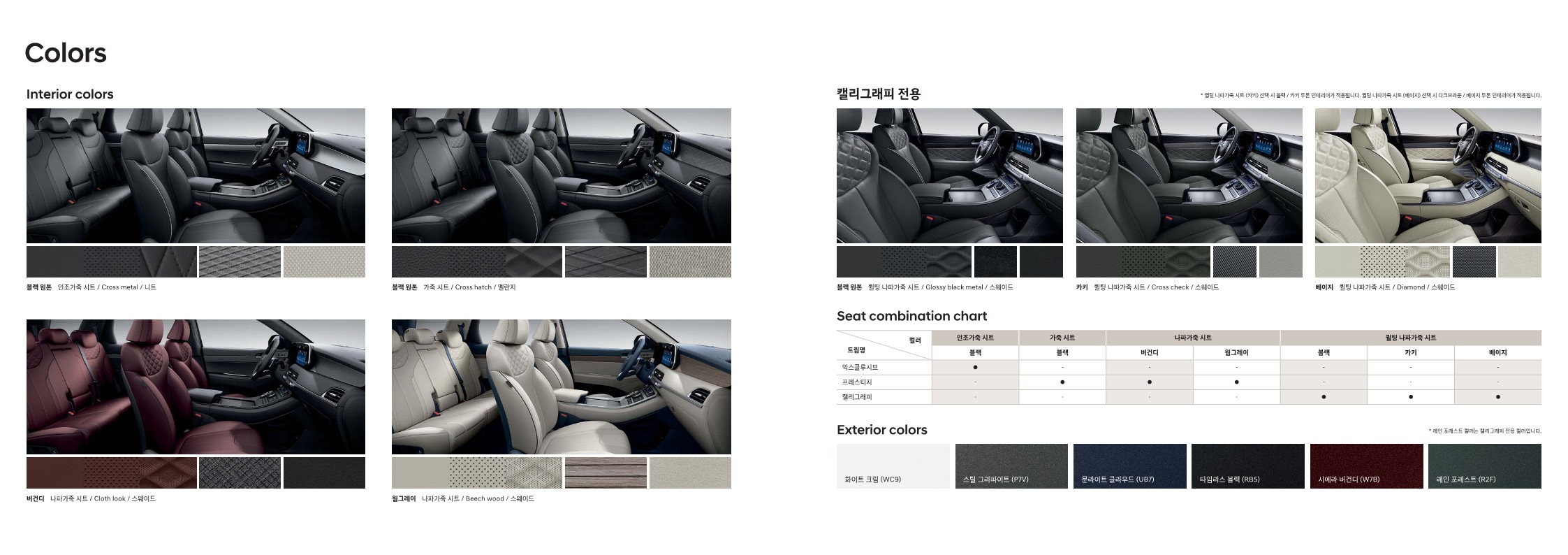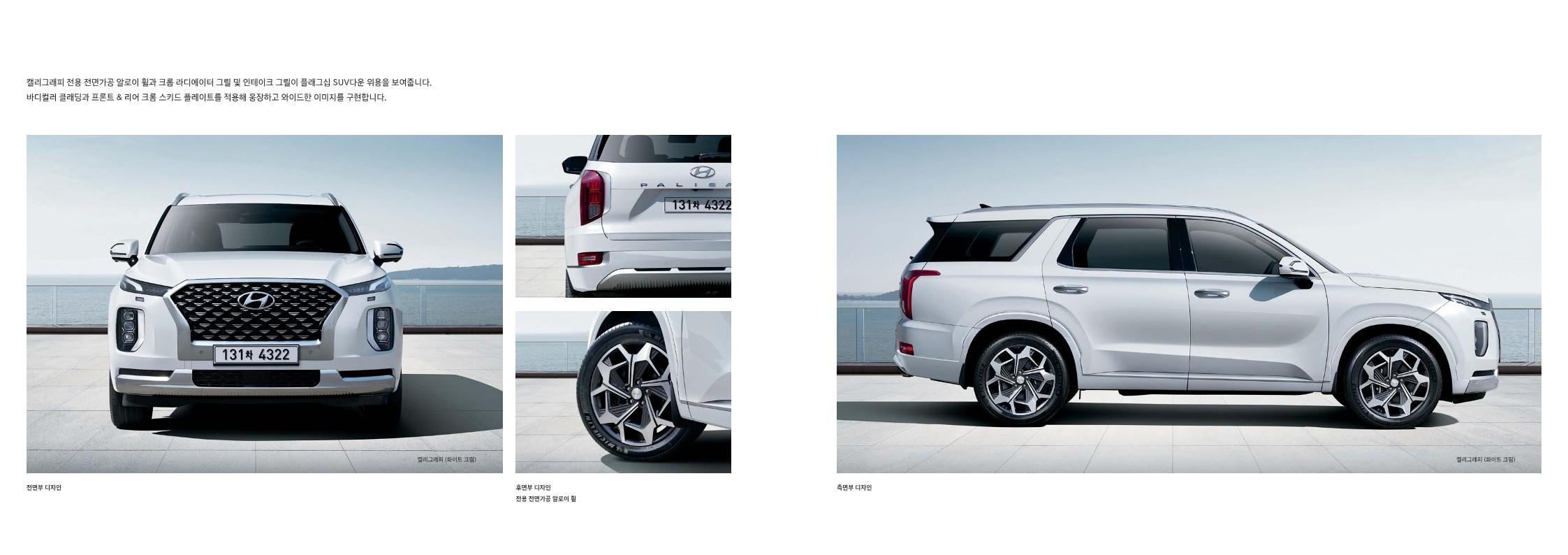 3열이 존재하는 대형 SUV이기에 측면에서의 과감함은 없습니다. 대신 1열과 2열 도어에 입체감을 주는 선과 면을 통해 자칫 밋밋할 수도 있는 측면에 생동감을 불어넣었습니다. 다만 다소 무난한 휠 디자인은 조금 아쉬움이 남습니다. 캘리그래피 전용으로 들어가는 휠은 그나마 나은 것 같습니다. 기본 휠은 18인치이고 프레스티지부터 20인치 휠과 타이어가 적용됩니다.